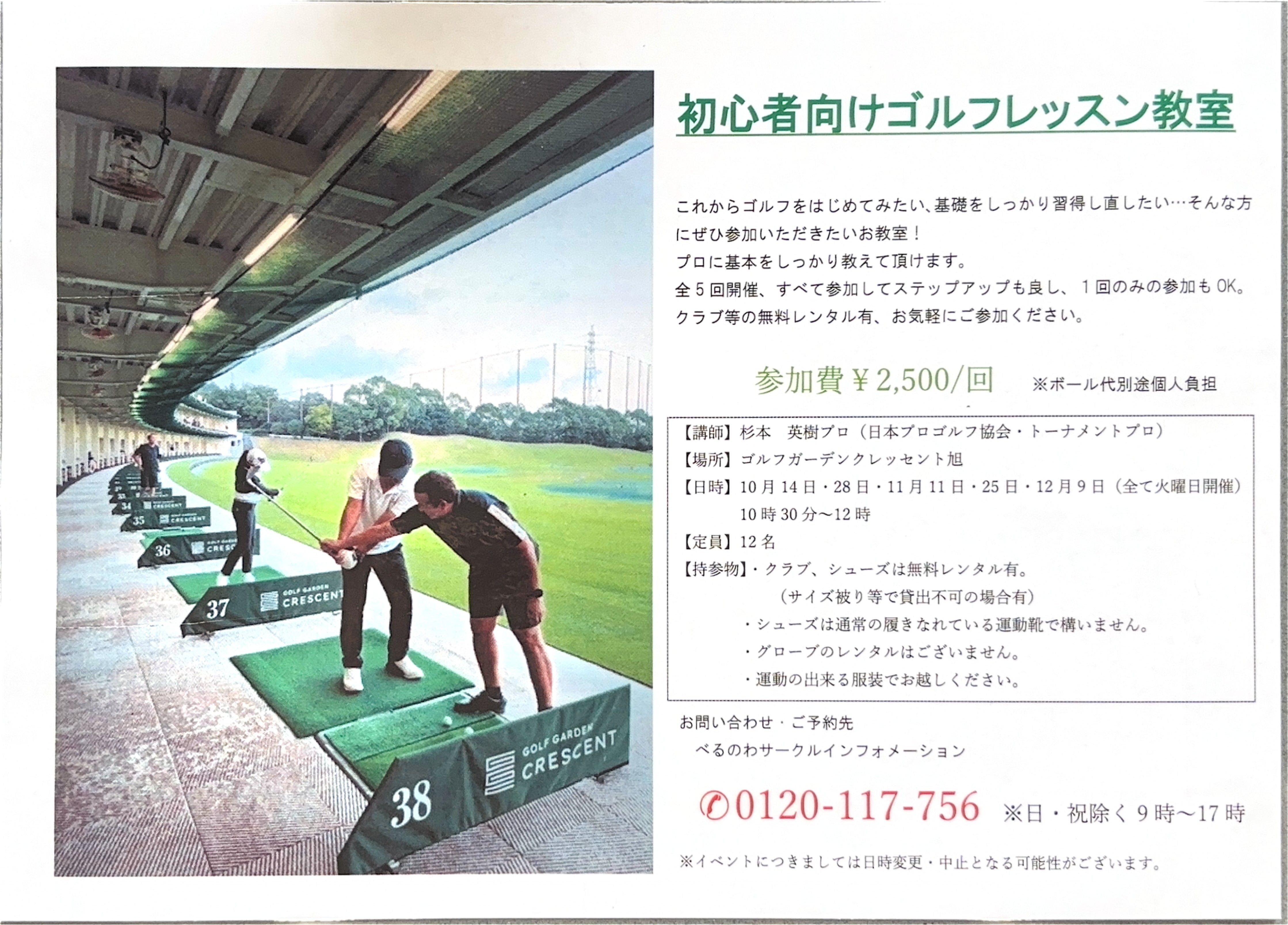 10月と11月に、クレッセント旭で『初心者向けゴルフレッスン』を開催します!(^^)!